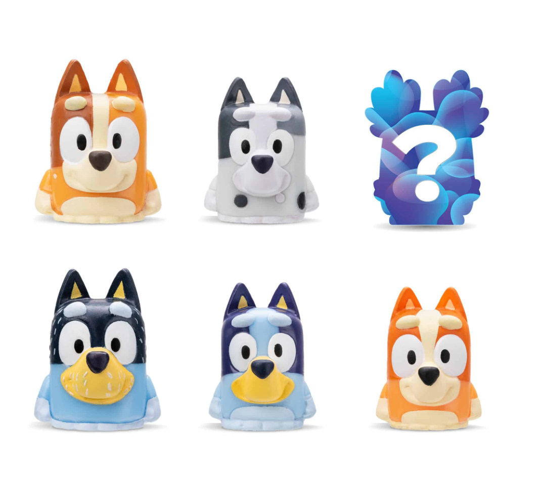 Squish them, twist them, can’t resist them! Get ready to squeeze up some fun with Bluey and friends with the NEW Bluey Mash’Ems Series 1! These adorable little Mash’ems pups fit perfectly into the palm of your hand and are super fun to squeeze and stretch! Can you collect them all?