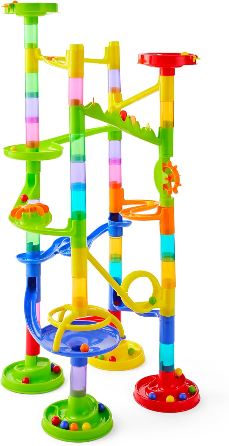 Ignite your child's imagination and fuel construction adventures with Kidoozie's captivation Mega Marble Madness set! With over 70 versatile pieces, this kit empowers young minds to design and build their own gravity-defying racetracks, unleashing a world of creative problem-solving and endless engineering fun. From twisting spirals and daring drops to gravity-defying loops and thrilling ramps, the possibilities are endless. Watch their faces light up as they experiment, collaborate with friends in exciting marble races down custom-built tracks, and witness their creations tower at an impressive 28 inches! Let this playset be the gateway to a world of hands-on creativity, where the only limit is their imagination!
