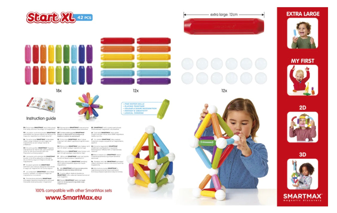The Start XL set includes 42 pieces and a guide to build a range of models. Extension sets are available separately.