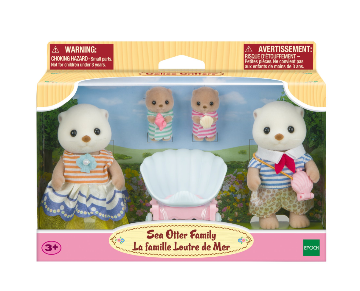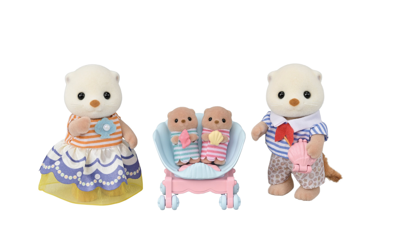 - This set contains the Sea Otter family in matching nautical outfits.This set includes the 3 inch father and mother, and 2 cradle baby twins with a pink and blue shell-shaped stroller.