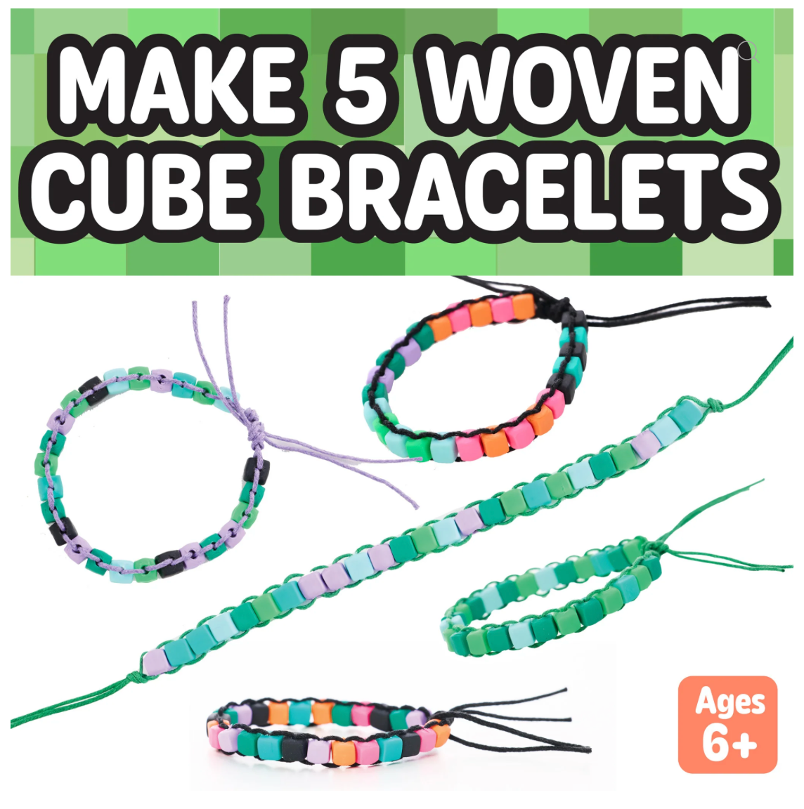 Build your style one block at a time! The Woven Cube Bracelets Kit is packed with pixel-perfect fun, bold colors, and endless inspiration for kids who love gaming-inspired style. Inspired by the blocky world of popular video games, each bracelet turns screen-time favorites into hands-on creativity and wearable art. STEAM-friendly, this kit bridges digital inspiration with hands-on learning—perfect for turning techy interests into real-world creativity.