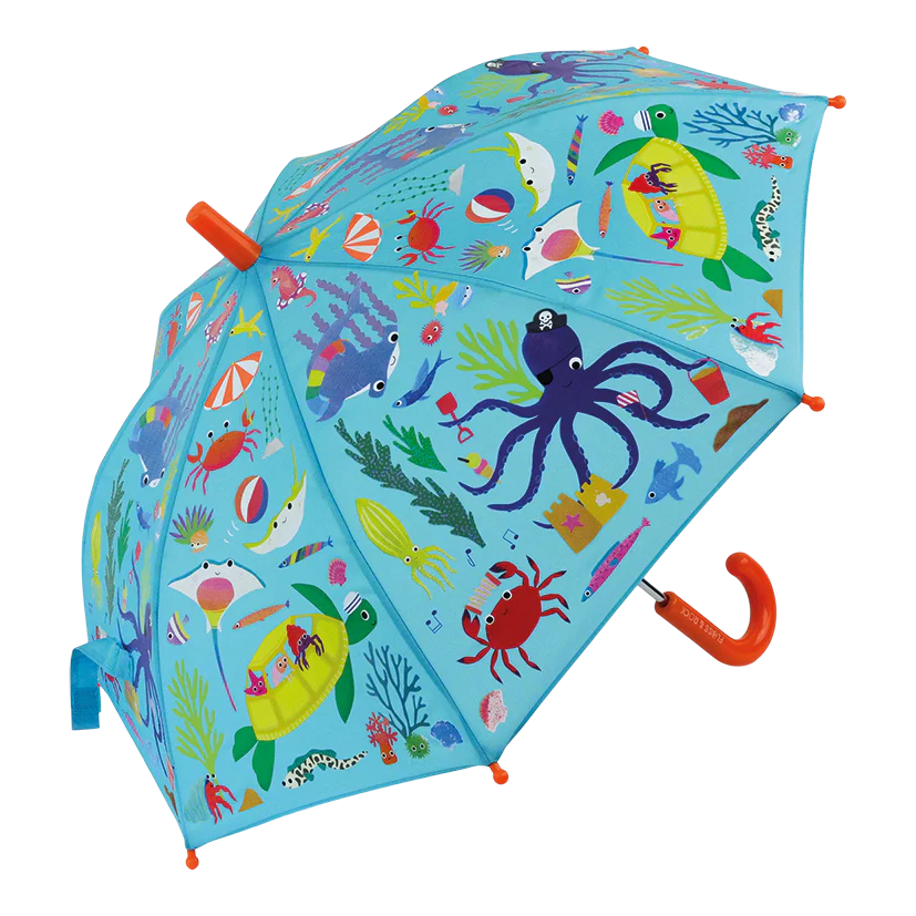 Our popular Colour Changing Umbrellas take to the sea in a super fun Ocean design! Who doesn’t like the rain… your little ones will soon love it with their Magic Colour Changing Umbrella! Every time you go out in the rain the design changes into colour, it’s SO much fun!